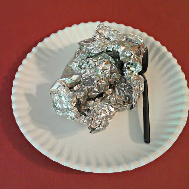 Para servir, coloque un paquete de papel en un plato de papel resistente. Abra el paquete (cuidado con el vapor!) y disfrutar. Limpieza es fácil. La bandeja de cocción fue protegida por el papel de aluminio, tan sólo poner de nuevo en el gabinete. Deseche la placa de papel y papel de aluminio, y se hace la limpieza!