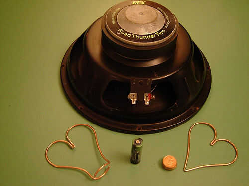 Un imán de neodimio se puede utilizar en lugar de las monedas y altavoz de bajos.