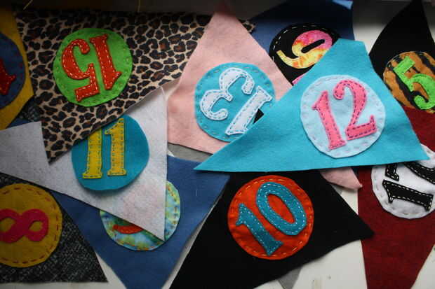 Entregamos a continuación coser el fieltros círculos a los frentes de la bandera.