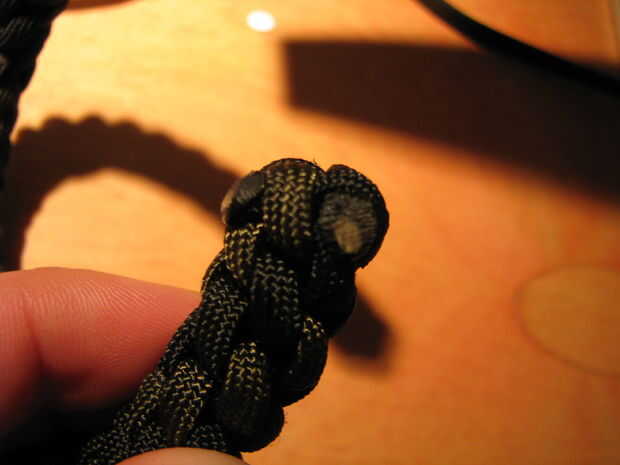 Al llegar al extremo del alambre, hacer el nudo una vez más que va en la parte superior y cubre el hilo. Luego todos los cables de cuatro cerca de 1 1/2 centímetros lejos del nudo y los derretir a que desenvuelva mientras no esté y también que el nudo no viene deshecho.