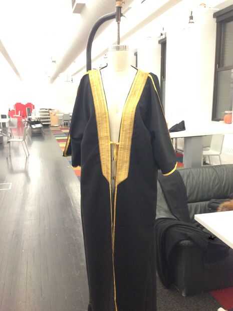 Solía el thobe Arabia Saudita (lo obtuve desde amazon http://www.amazon.com/Desert-Dress-Black-Bisht-Cloak/dp/B00H4BFREW/ref=sr_1_19?ie=UTF8&qid=1418778920&sr=8-19&keywords=thobe) como base para hacer la abaya. Cuando se separó, la ltima se parece a un rectángulo, así que tuvieron que cortar las piezas de él y lo vio de nuevo a darle manga.