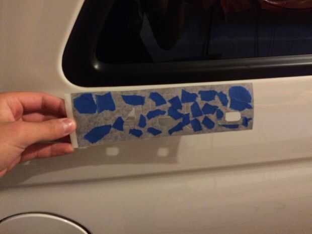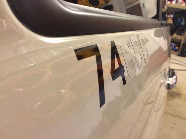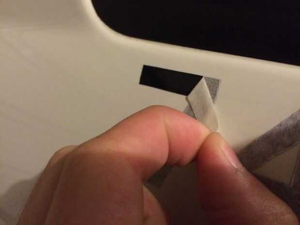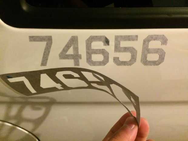 Es más fácil colocarlo donde usted lo desee y presione hacia abajo en unos pocos lugares cada letra para que todo se pegue en el lugar mientras trabajas. Usted tendrá que presionar firmemente cada letra al cuerpo deslizando las manos sobre ellos uno a la vez. Una vez que las etiquetas estén firmemente en su lugar, puede cuidadosamente retire la cinta y la plantilla y quitar la parte superior de las letras. Pero ten mucho cuidado. Si no tire la cubierta a un ángulo de 180 grados de la etiqueta, podría tirar el vinilo del cuerpo.