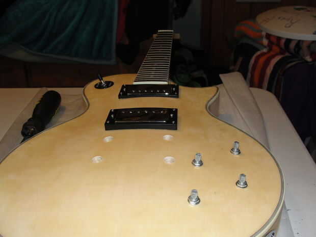 sugiero fuertemente que usted seco ajustan su guitarra, antes que hacer nada más! Si usted hace cambios a su guitarra sin saber que trabaja en el primer lugar, usted no puede volver! lo seco montados todas las piezas, pero no integrarlo totalmente, usted puede pero no debe. Sólo asegúrese de que todo el ajuste de piezas perfectamente, Si compraste un Kit de Les Paul, el cuello tiene que sentarse encima del cuerpo sobre un 1/8 de pulgada. ya por correo electrónico la empresa Saga y confirmaron mis indagaciones.