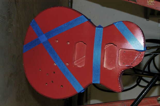 Ahora que han grabado de su guitarra, es momento de pintarla! habrá 3 o cuatro pasos que cubra este, porque estoy haciendo varias capas de pintura para mi diseño de la raya. Usted puede hacer cualquier diseño que desee. también pinté el cuello y cabezal de un color (blanco) que se incluye en este paso también.