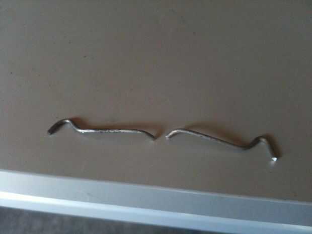 Usando alicates doblar la varilla de 1/8" en una pierna y cortar a la longitud apropiada,