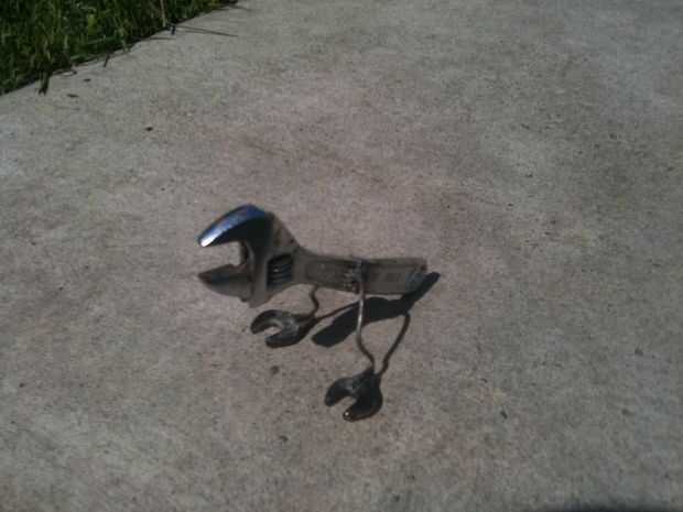 Tachuela suelde los pies a las piernas y las patas a la llave cresent, aboot a medio camino encima de la llave
