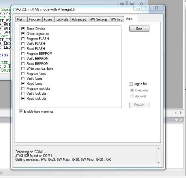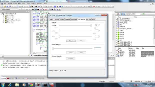 se sabe que jtagice tiene un complicado sistema conocido como "tiempo intermitente", que sobre 6-7 segundos después de conectar en la ranura usb, durante el tiempo de parpadeo del led de jtagice parpadea al mismo tiempo es el momento más importante para nosotros en el momento