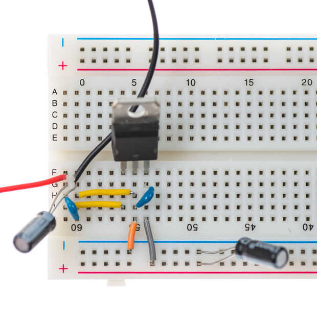 Para nuestra demostración, vamos a usar la fuente de alimentación 5V básicos creados por el fundador y amigo, Jay. Por encima puede ver una imagen del circuito.