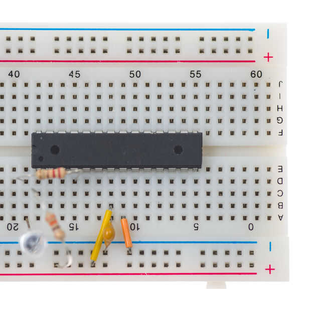 Nota: La tensión de la resistencia en Pin 1 controla lo que debería ser "Baja" para que el ATMega no resetea constantemente. El LED también necesita la resistencia para que el ATMega no mata el LED.