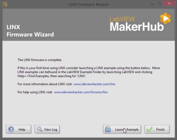 Después el Asistente de firmware haya terminado, haga clic en ejemplo de lanzamiento.