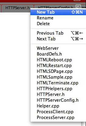Visite MPIDE. Haga clic en la flecha del extremo derecho y agregar una ficha título "HTMLBlink.cpp".