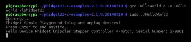 gcc HelloWorld.c -o HelloWorld-lphidget21