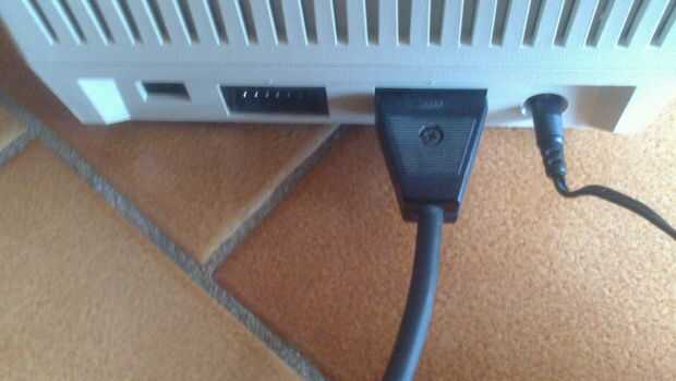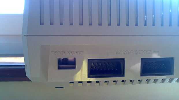 Conecte un lado del cable serie en el puerto serie del ordenador, luego en el conector derecho de la unidad de disquete (vista lateral trasera, ver fotos). Buscar en el conector del interruptor de dirección en la parte posterior (a la izquierda), si muestra un interruptor negro. Si no (o si ves un interruptor gris), utilice un destornillador para hacerlo se ve como la imagen.