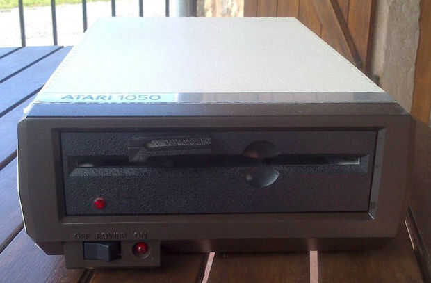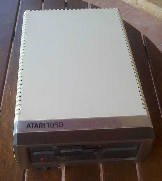 Aquí le damos la Atari 1050, la unidad de disco disquete externo, para discos de 5" 1/4. Algunas de ellas fueron proporcionadas con el equipo.