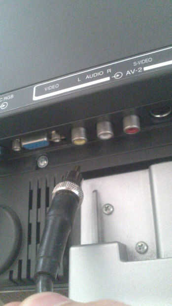 Para controlar totalmente las salidas de vídeo de ordenador, he probado la señal HF TV. Apagar todo, quitar el cable del monitor y conecte el cable de antena en el equipo (Ten cuidado, hay un sentido de respeto, realmente no sé por qué). Retire el cable de antena de TV y conecte el cable de antena del equipo.
