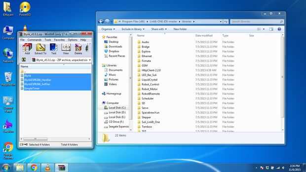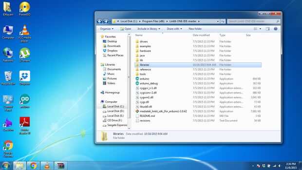 Ahora supongo que ya ha instalado el IDE un Linkit. Si havnt luego ir a este enlace y seguir el procedimiento. Una vez que el IDE instalado, es necesario instalar la biblioteca. Ahora es simple. Descargar este archivo zip. A continuación, abra la carpeta IDE. Abra la carpeta de bibliotecas y extraer el contenido del archivo zip dentro de la carpeta.