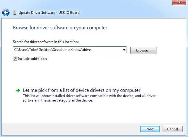 Cuando se le preguntó a instalar automáticamente o desde una ubicación específica, seleccione "Examinar mi PC para el software de controlador".