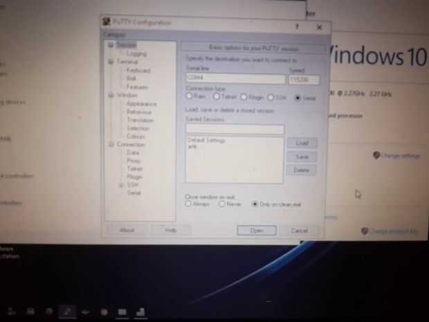 -Comprobar el número de puerto COM cuando se conecta un cable serial USB a la PC. (Si no se detecta la conexión del puerto COM, temporalmente la energía en el tablero de artika.