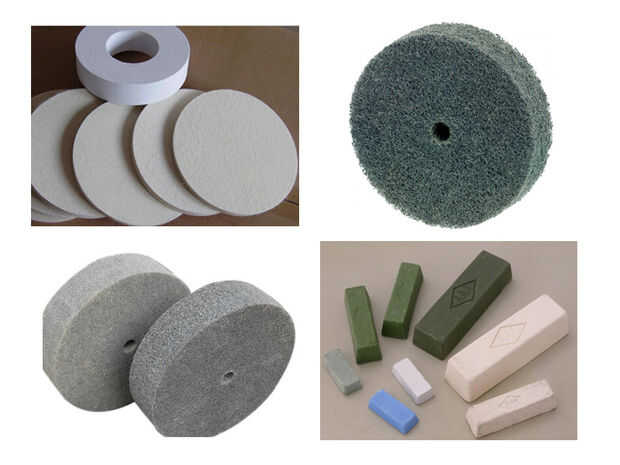 Se trata de material utilizado para el pulido: pulido rueda, rueda de algodón, tejida rueda y pasta de pulir. La rueda de pulido duro-a y resistente se utiliza en la primera etapa y luego más suave algodón rueda. Pulido de pasta de diferentes colores también se utilizan en diferentes etapas.