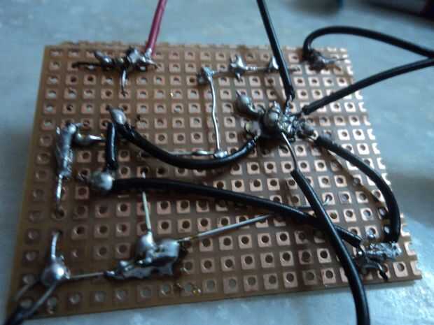 Soldar el conector de audio a los lugares correspondientes. Ahora soldar todos los pines de tierra de los componentes entre sí. Asegúrese de que las conexiones a tierra no deben tocar positivo pines de los componentes. En la foto los cables negros son todas las conexiones a tierra. Por último soldar el conector de la batería de 9 voltios a tablero recordando el lugar correcto para ambos terminales.