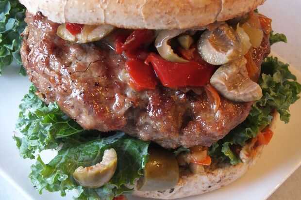 1. Preste atención a la ontop de pan y por debajo de la hamburguesa. Son beige, la misma familia que la hamburguesa marrón. Si no capa de colores entre la hamburguesa todo parece poco atractiva. ¿No quiero el pan para ser el foco principal para mi cerca "sugiere" que no hay pan, pero no es el objetivo principal... puedes decir es un bagel?