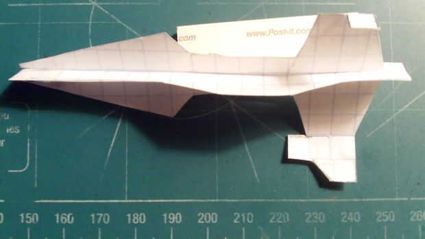 este es el avión de papel mejores mundos. Diseñado para hacer cosas que ningún otro avión puede hacer. Tiene aletas que pueden ser ajustadas para hacer el avión vuela arriba o abajo baja. No es un avión difícil pero necesita presision exacta para hac