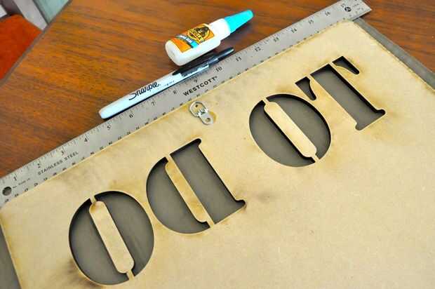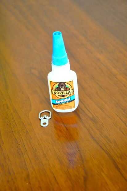 Para ello, aplicó una pequeña cantidad de gorila Super Glue en la parte trasera de la placa del gancho "D" y me presiona con cuidado sobre el MDF.