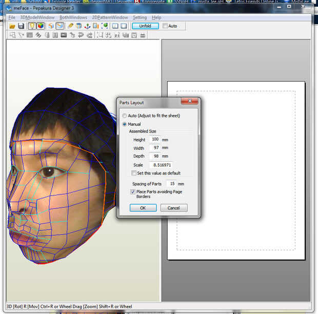 Desmarque la casilla "Auto" al lado del botón"desplegar". El "Auto" hace que cortará el modelo hasta forma una hoja de papel... que le dará un modelo muy pequeño.