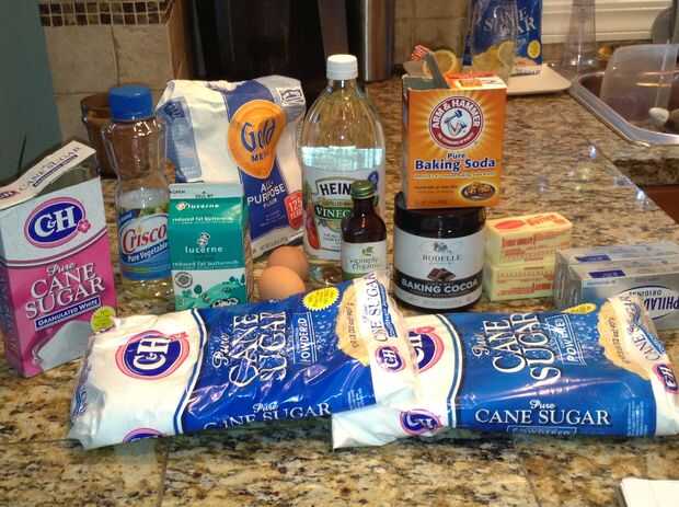 Paso 1: ingredientes 2 1/2 tazas de harina1 1/2 tazas de azúcar1 cucharada de cacao en polvo1 cucharadita de bicarbonato de sodio1 cucharadita de sal2 huevos1 1/4 taza de aceite vegetal1 taza de jocoqueColorante de alimento rojo1 cdita de vainilla1 c