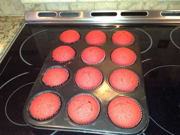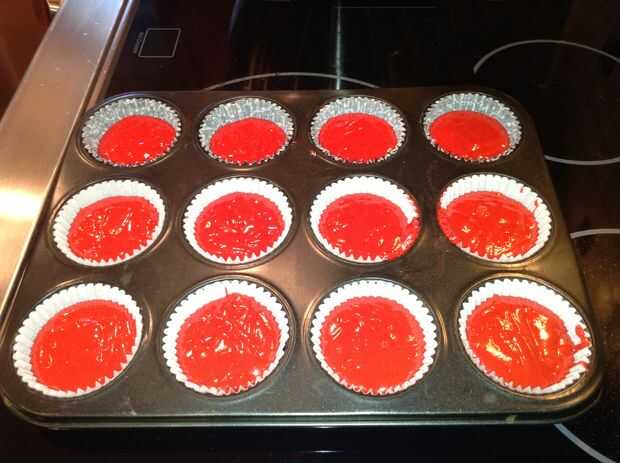 Paso 1: Haga los cupcakes Comprar una tienda de compra de mezcla de pastel de terciopelo rojo, o seguir esta receta y hacerlos caseros:Cupcakes de terciopelo rojo:Ingredientes:-4 cucharaditas sin sal mantequilla, temperatura ambiente-3/4 de taza de a