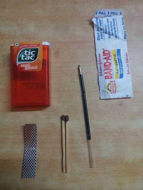 En primer lugar, vamos a hacer el kit de supervivencia esencial miniatura que incluye todo el material visto en la imagen