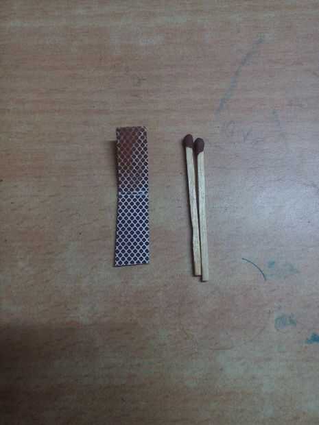 Tomar dos fósforos y la franja de corte desde el lado de la caja de cerillas