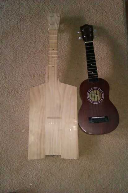 La foto de arriba es del producto terminado al lado de un ukelele estándar - usted probablemente puede adivinar que uno hizo. (el que está a la izquierda).