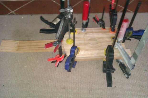 Ahora difundir un montón de pegamento y fije otra firmemente – unos tornillos 30 mm habría funcionado igual de bien (si no mejor), incluso le gustaría arreglar en un patrón decorativo así! Si usted no desea dejar en usted los saca y llenar los hoyos con pinchos de barbacoa tacos/bambú. Como se puede ver aquí hay un montón de madera posiblemente perdido alrededor de esa cámara resonante y repuesto por lo que hay espacio considerable para formar del cuerpo creativo o jugando con el tamaño de la cámara de resonancia.