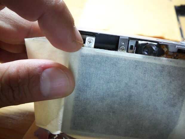 Aquí utilizamos la cinta de enmascarar, utilizarlo para proteger la grasa de las manos y el polvo que pueda tener sobre el medio ambiente. No presione la cinta, Coloque suavemente una pieza en la pantalla