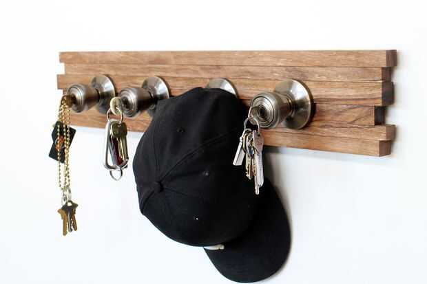 Si eres como yo, tienes un pequeño montón de artículos de llevar todos los días en algún lugar cerca de su puerta. Para evitar que esta creciente pila de teclas adicionales y baratijas en jaque hice un llavero de perillas de puerta que se monta en la pared, perfecto para trabajar doble deber como titular de capa sombrero o rack.