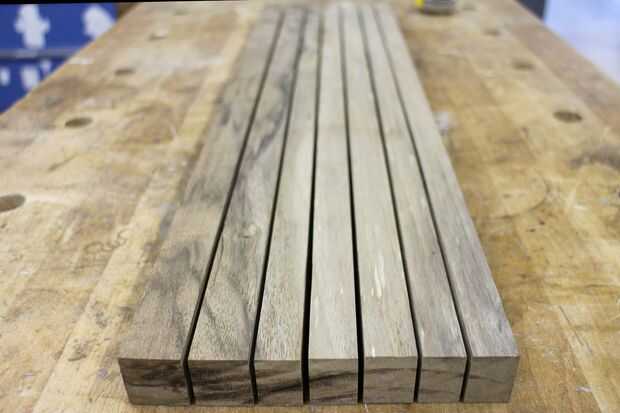Varió el espesor de los cortes entre 3/4" a 1" para cada paso, haciendo cada tira ligeramente diferente que el anterior.