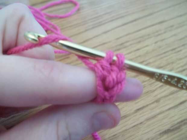 yo y ponga el gancho a través del siguiente punto, yo y tire a través de la puntada, yo y tire a través de dos lazos en el gancho, yo una vez y tire a través de puntadas restantes.