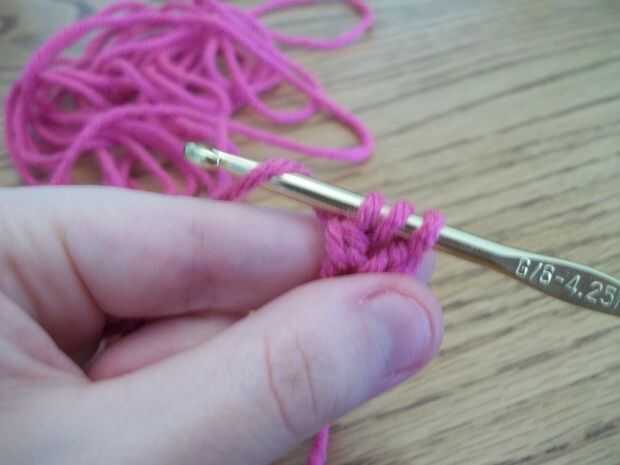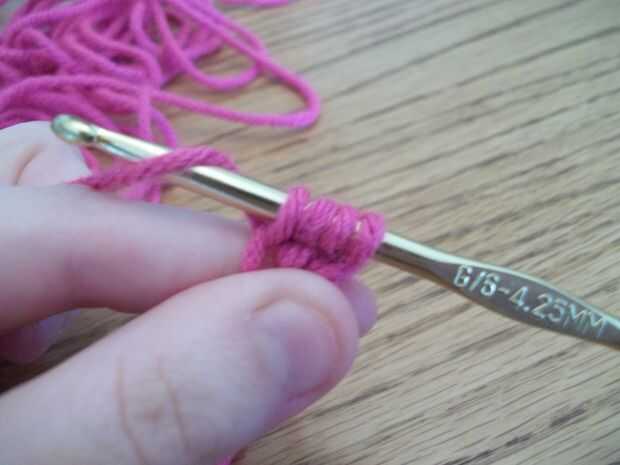 Yo dos veces, ponga el gancho a través del siguiente punto, yo y tire a través, yo tire a través de dos lazos en el gancho, yo y tire a través de dos lazos en el gancho, yo una vez más y tire a través de los últimos lazos en el gancho.