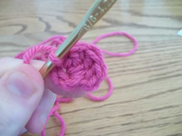 SL St: empujen hilado a través de centro o anillo y tire a través del bucle en el gancho al mismo tiempo.