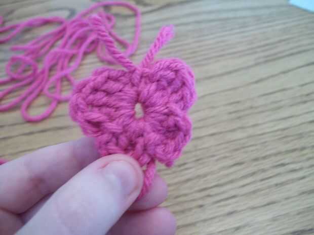 CH 3, se unen en cadena 1. * hacer ch 2 siguiente todos en el centro del anillo. (cadena 1, de la dc, tr, tr) sl st en el centro del anillo. 2, (Dc, Tr, Dc) de la cadena sl st en centro de ring.* ** repetir una vez más. Fije apagado. No corte o tejer en los extremos.