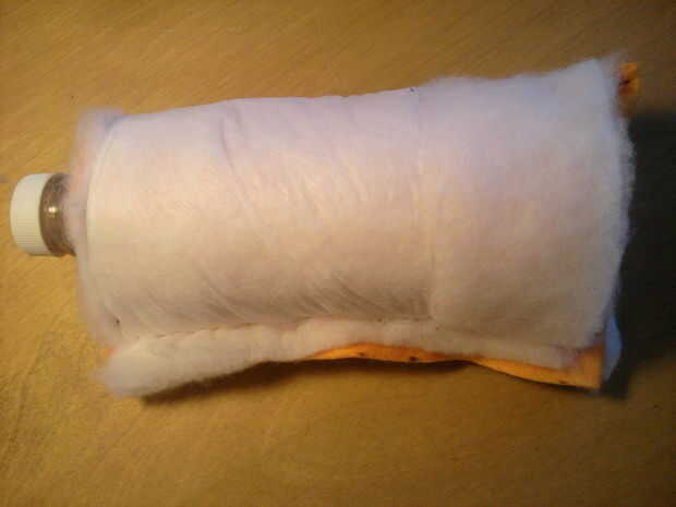 Puntada recta cuatro capas todos juntos en el otro lado, aproximadamente 3/4" de borde. Verifique el ajuste de la botella. Cortar aproximadamente 1/4" de costura.