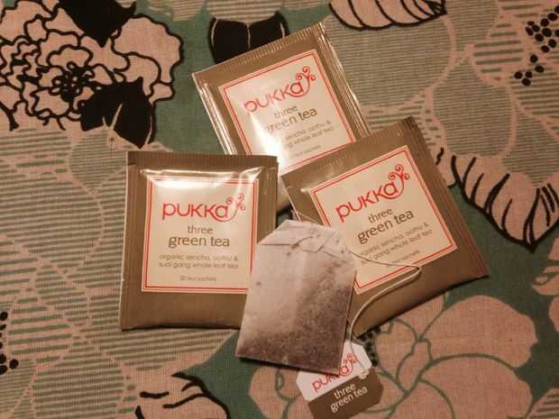 Las bolsas de té verde contienen cafeína, antioxidantes y contiene taninos. Taninos son responsables del sabor y color del té. También taninos estimulan la circulación sanguínea y ayuda a apretar y calmar la piel. Lo que significa menos hinchazón.