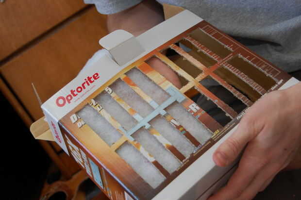 he creado esto para reducir la cantidad de polvo de litera de gato en nuestro lavadero.He intentado encontrar una caja que estaba cerca del mismo tamaño que los filtros de aire que tenía para mi casa.  Una caja de pañales estaba lo suficientemente ce