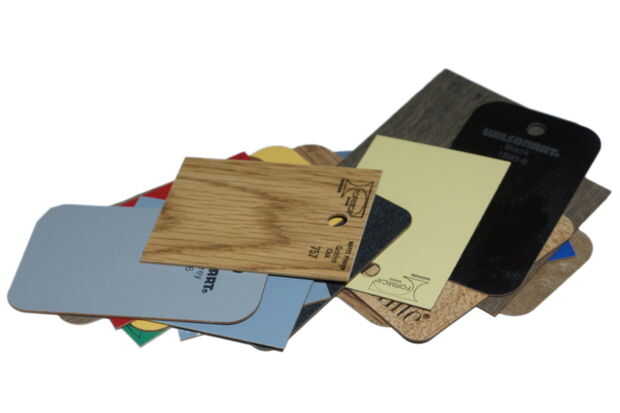 Ah, pero poco después de publicar este Instructable he encontrado una respuesta mejor que las piezas de plástico: utilice una pieza de muestra de encimera laminado! Las muestras libres están disponibles en muchos colores y texturas, y este material es más rígido que el de plástico transparente y máquinas muy bien--siempre pones cinta adhesiva sobre él para evitar saltar cuando se corta. El laminado aún está respaldado por un pequeño pedazo de espuma de artesanía como la primavera. Las fotos extras añadidas a este paso deberían ser obvio...