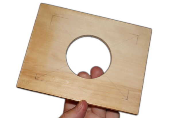 Tomar el y sujetarlo en la parte posterior. Abra la parte delantera de la cámara y retire el lensboard. Llegar y marcar las esquinas de la película de apertura en su tabla.