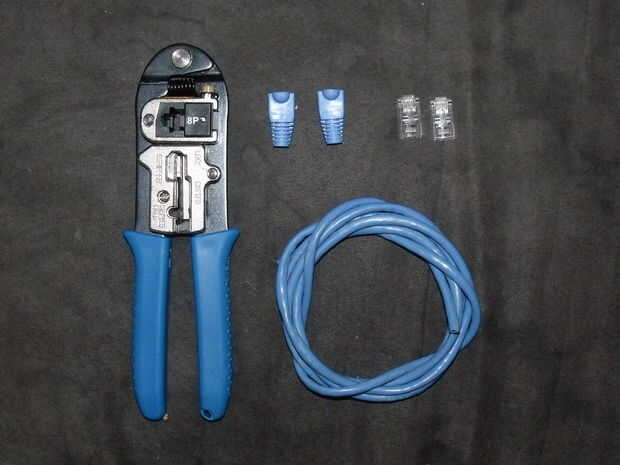 El arrugador que tengo es una herramienta de combinado de IDEAL que incluía un dado RJ-45 y un alambre 6 Tele. Die del conector del cable. también incluye conectores para ambos tipos de cable y me costó sobre $50,00 dar o tomar. Esta será la parte más costosa de su proyecto, pero a la larga vale la pena cada centavo.