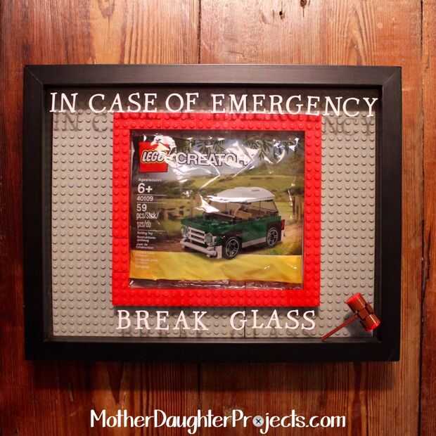 Hice un cuadrado de Lego ladrillos para sostener el Lego Fije firmemente en su lugar. Apareció la placa base en el marco utilizado una ficha adhesiva para fijar el mazo de Lego y añadió las letras.