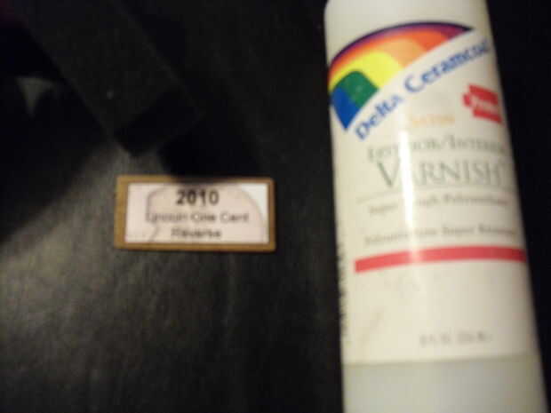 Una vez que todas las etiquetas están en lugar, es una buena idea para cubrir la etiqueta y la madera con un par de capas de clear. Esto mantiene la etiqueta de peladura apagado, manchas o descoloramiento. También se ve muy bien. Tome su cepillo de la esponja y aplicar una fina capa uniforme y deje que se seque antes de aplicar otra.