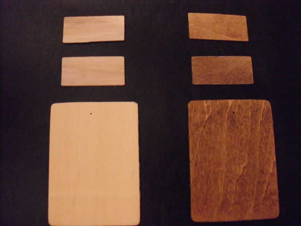 Tomar unas maderas de pequeñas embarcaciones que es apenas más grande que sus etiquetas. Estas piezas pueden ser teñidas o pintadas para todos los gustos. Una vez seco el tinte/pintura, despegue el revestimiento de las etiquetas y en el centro de la madera. Esto es mucho más fácil hacerlo si pegar la etiqueta en la punta de un cuchillo puntiagudo y usarlo para colocar en la madera.